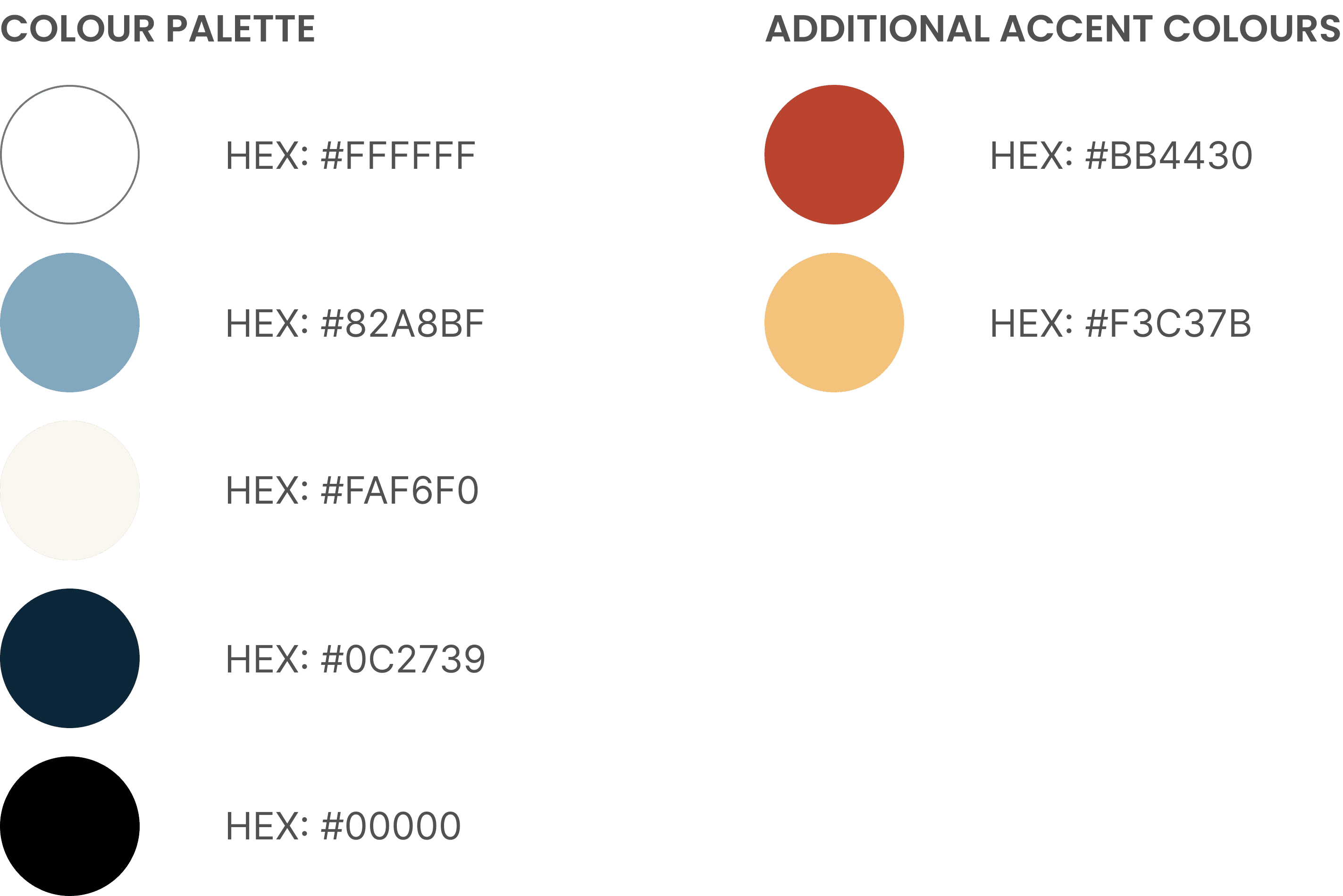 Neutral blues and creams formed the foundation, staying aligned with CND’s nonpartisan brand. Complementary orange accents were introduced to draw attention where needed, while remaining feasible within the Squarespace color limitations.