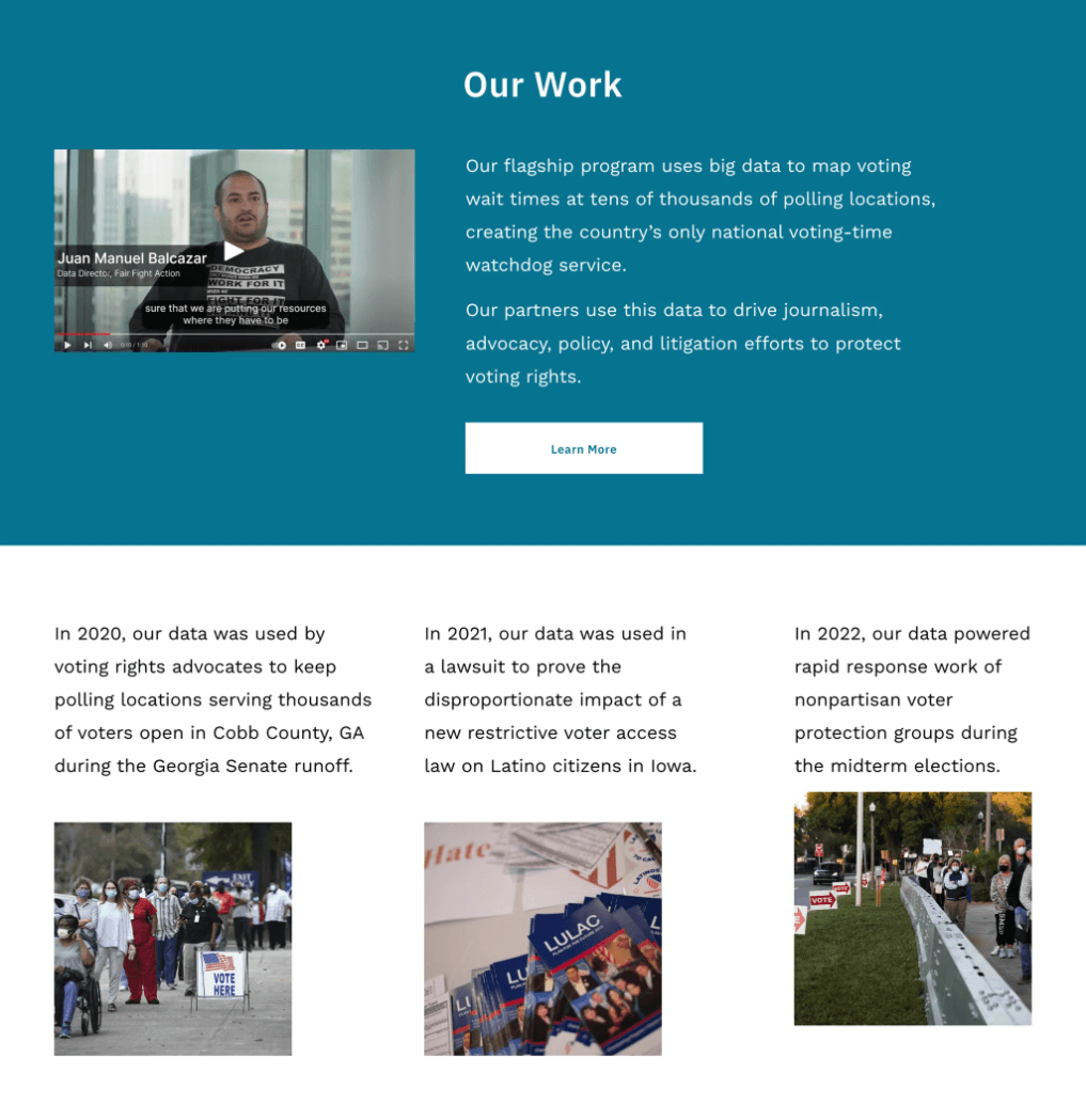 Shifting to a more product-focused strategy by highlighting the organization’s data products. This helps in demonstrating their impact in the field for potential clients visiting the site.