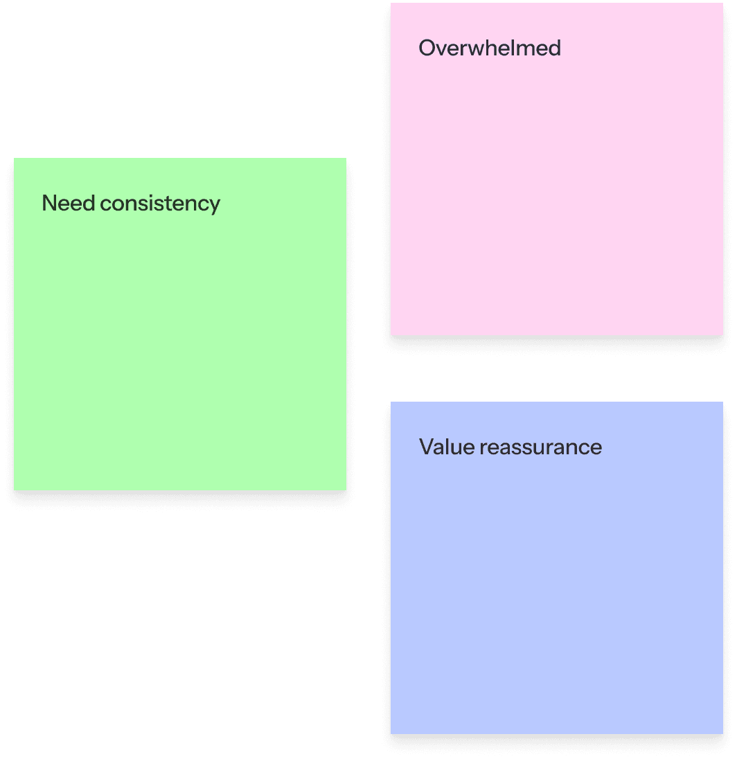 During sessions, I documented pain points, financial literacy, preferences and expectations, and behaviour patterns that would directly inform design and business decisions. After each session, I transcribed recordings and synthesized data, and pulled direct quotes to provide context.